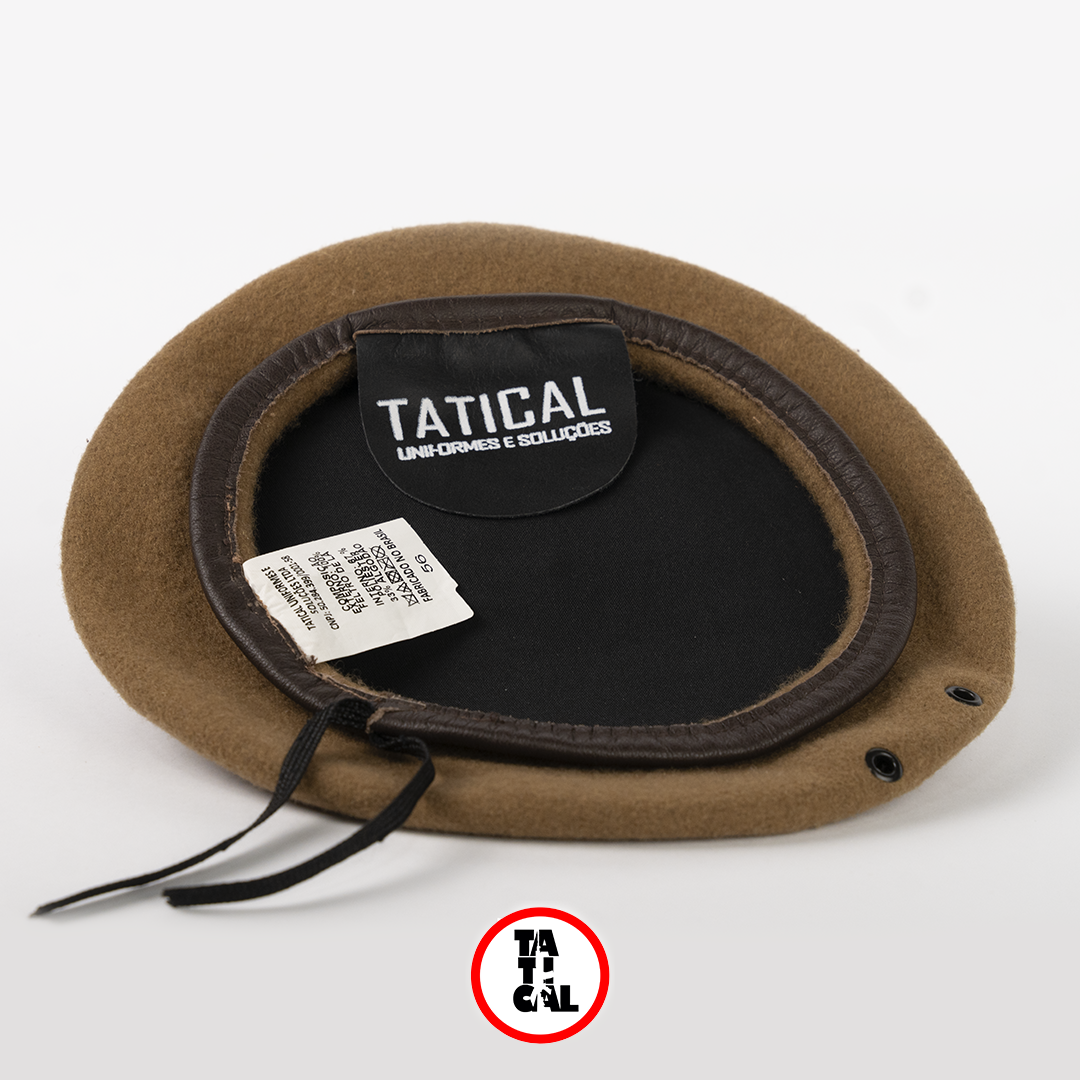 A Boina Areia é confeccionada em tecido Feltro 100% Lā, garantindo conforto e durabilidade. Na cor caqui, com borda de couro e reforço para fixação de distintivo, segue o padrão PMSC, combinando estilo e funcionalidade para o uso profissional. Ideal para quem busca alta resistência e ajuste perfeito.